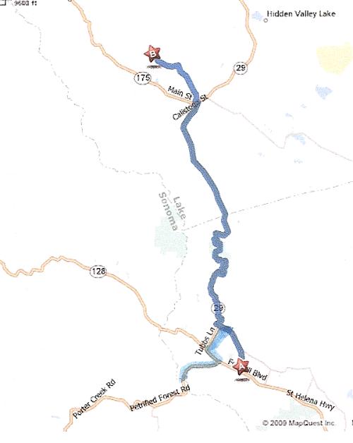 East on Mark West Springs Road (11 miles) It becomes Porter Creek Hwy
